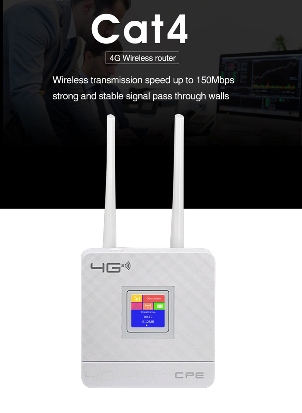 CPE903 é um roteador sem fio 4G de alta potência com slot de cartão sim 4G e processador de rede MIPS, é uma solução para empresa, casa, empresa, rede Wi-Fi do escritório. É compatível com o padrão IEEE 802.11b/g/n, a taxa de dados chega a 300Mbps. Com antena externa dupla, o sinal Wi-Fi é mais estável e de maior alcance. Ele suporta 10 usuários de Wi-Fi simultaneamente.